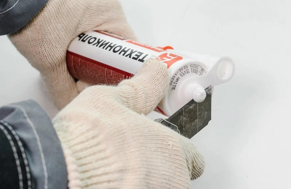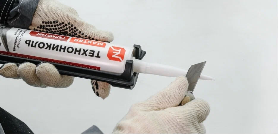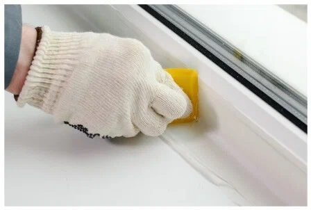 Mezera mezi rámem a parapetem je očištěna od prachu a nečistot, důkladně odmaštěna a vysušena. Těsnicí hmota se vloží do pistole a špička trubky se odřízne. Hmota se opatrně rozloží v tenké vrstvě přes trhlinu.