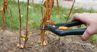 - Suché a nemocné stonky lze odstranit před začátkem podzimu, příprava na zimu s nimi není možná, protože mohou být zdrojem šíření virové infekce nebo množení hmyzu.